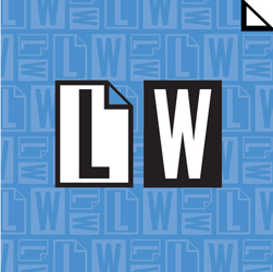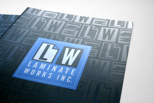 This simple logo speaks clearly to an industrial market with bold blue, black and white graphic design. The “LW” in rectangle panels and one corner turned over explicitly explains Laminate Works primary products, laminated panels. The logo is also designed to work as one color and used in a background “laminate” graphic.